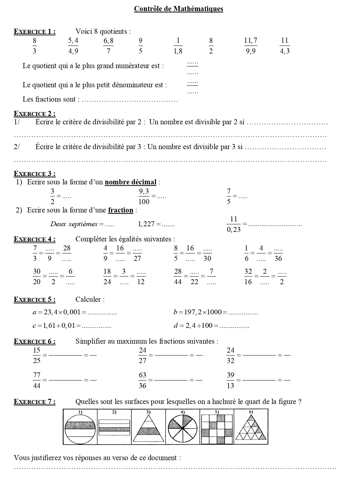 Le cours et les exercices corrigés sur le numérateur et dénominateur .